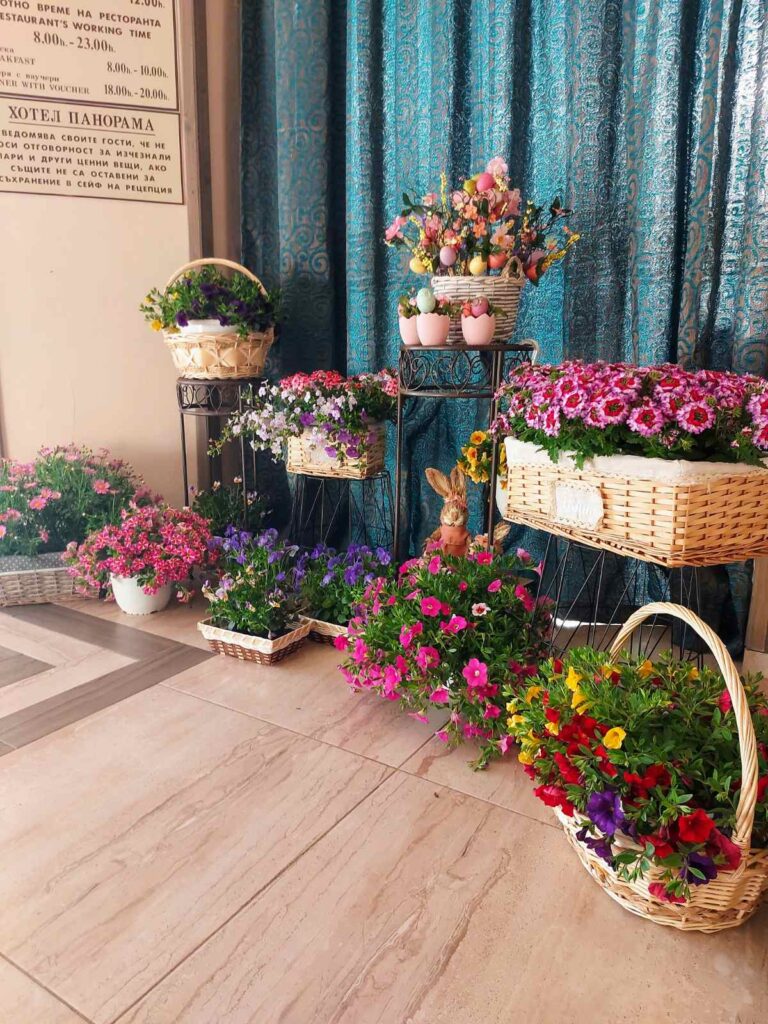 Великден е най-светлия християнски празник, и ние в хотел Панорама, град Сандански винаги тръпнем в очакване на Възкресение, всяка година! Разбира се целия екип на хотела се включва дейно в идеите и реализацията на украсата за празника и всяка година се справяме все по-добре…